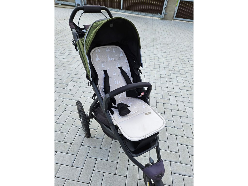 Podložka je oboustranná, dole je všitý omyvatelný šusťák v případě ušpinění od botiček. Díky důmyslnému prošití podložka dokonale kopíruje kočárek a tlumí tak případné otřesy. Funguje jako pohodlná vložka do kočárku a zajistí děťátku pohodlí i stabilní sezení při jízdě.