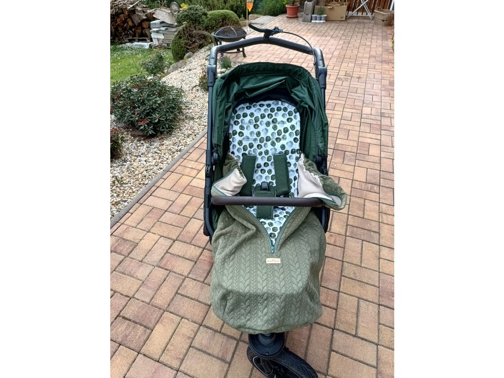 Dole je všitý omyvatelný šusťák v případě ušpinění od botiček. Díky důmyslnému prošití podložka dokonale kopíruje kočárek a tlumí tak případné otřesy. Funguje jako pohodlná vložka do kočárku a zajistí děťátku pohodlí i stabilní sezení při jízdě.
