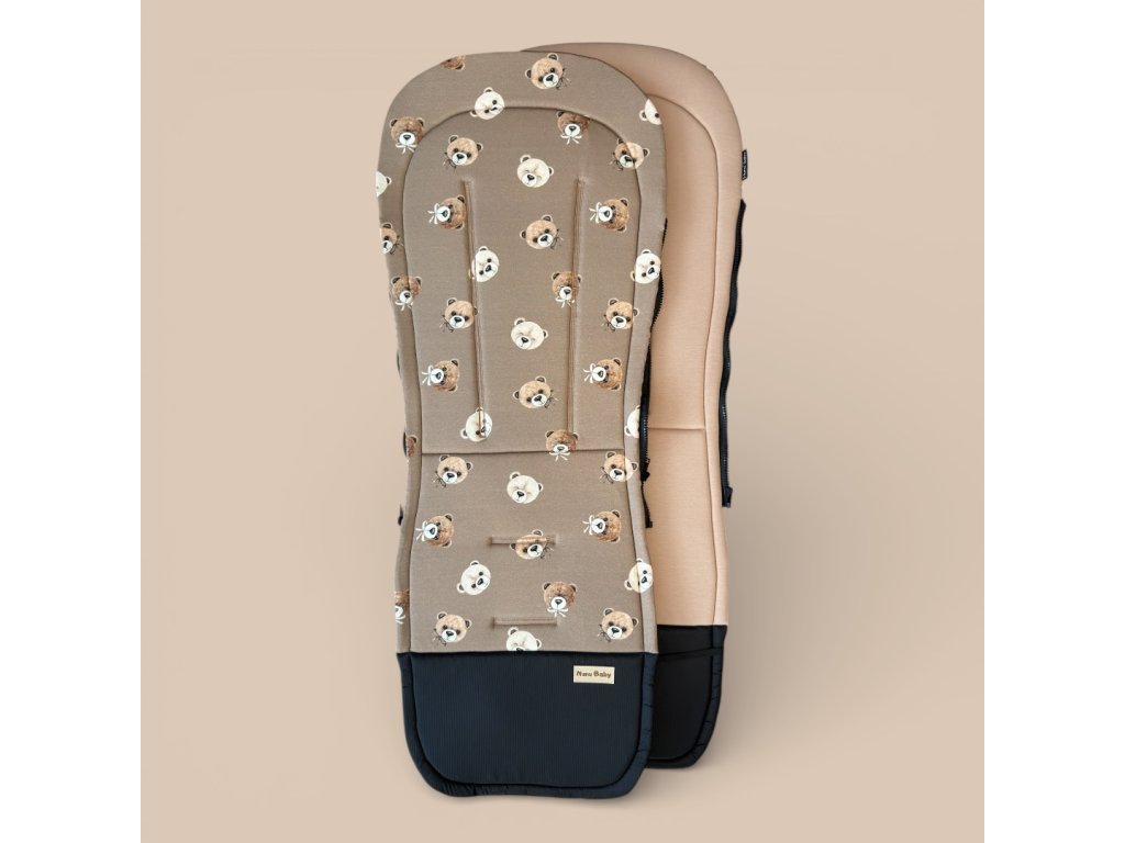 Podložka do kočárku - Medvědí hlavičky na hnědé