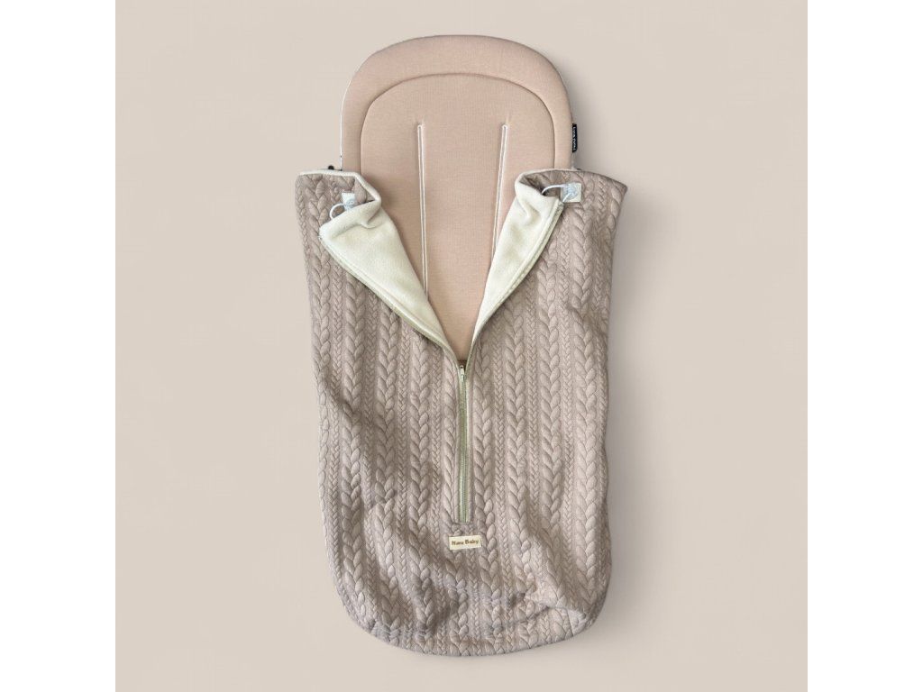 Podložka do kočárku + nepadací copánková deka - Taupe
