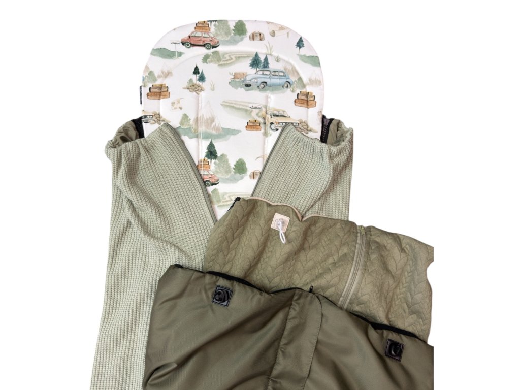 Podložku s nepadací dekou se zipem uprostřed doporučujeme zkombinovat také s nánožníkem, který zvýší tepelný komfort děťátka v případě náhlého poklesu teplot či chladného větru a který lze společně s tímto setem používat i místo fusaku.