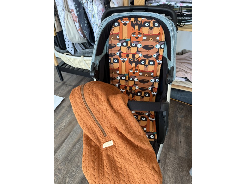 Podložka je oboustranná, dole je všitý omyvatelný šusťák v případě ušpinění od botiček. Díky důmyslnému prošití podložka dokonale kopíruje kočárek a tlumí tak případné otřesy. Funguje jako pohodlná vložka do kočárku a zajistí děťátku pohodlí i stabilní sezení při jízdě.