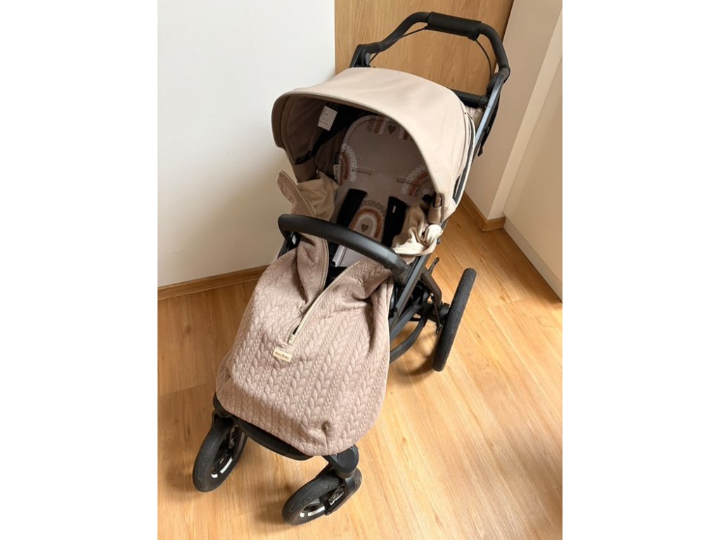 Dole je všitý omyvatelný šusťák v případě ušpinění od botiček. Díky důmyslnému prošití podložka dokonale kopíruje kočárek a tlumí tak případné otřesy. Funguje jako pohodlná vložka do kočárku a zajistí děťátku pohodlí i stabilní sezení při jízdě.