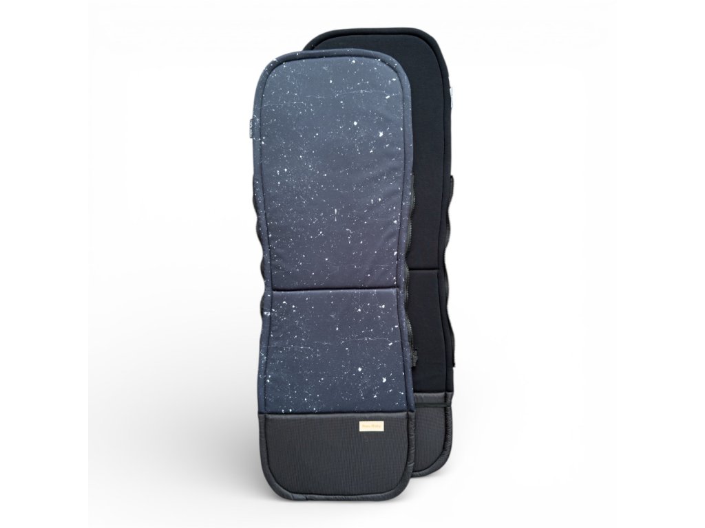 Dole je všitý omyvatelný šusťák v případě ušpinění od botiček. Díky důmyslnému prošití podložka dokonale kopíruje kočárek a tlumí tak případné otřesy. Funguje jako pohodlná vložka do kočárku a zajistí děťátku pohodlí i stabilní sezení při jízdě.