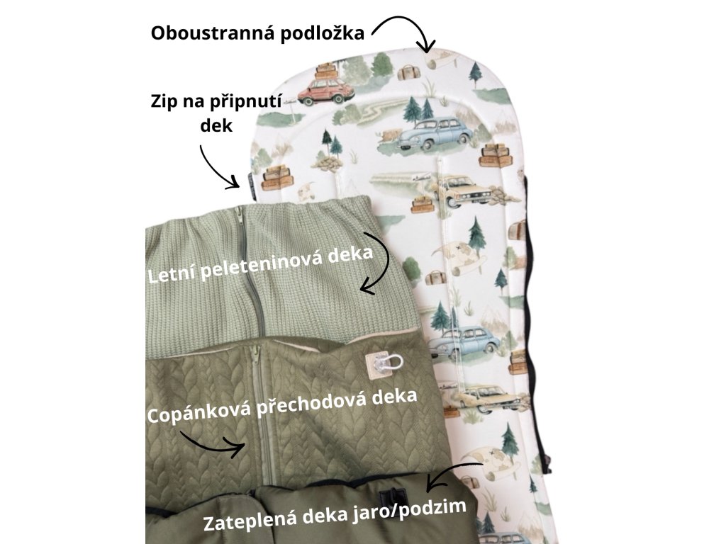 Součástí setu je pohodlná podložka do kočárku, která skvěle pasuje jak do sporovního sezení, tak do korbičky. Poskytuje měkký a bezpečný podklad. Podložka má všité boční zipy na připnutí jakékoliv naší nepadací deky, všechny tyto deky jsou kompatibilní s naší podložkou Nunu Baby.
