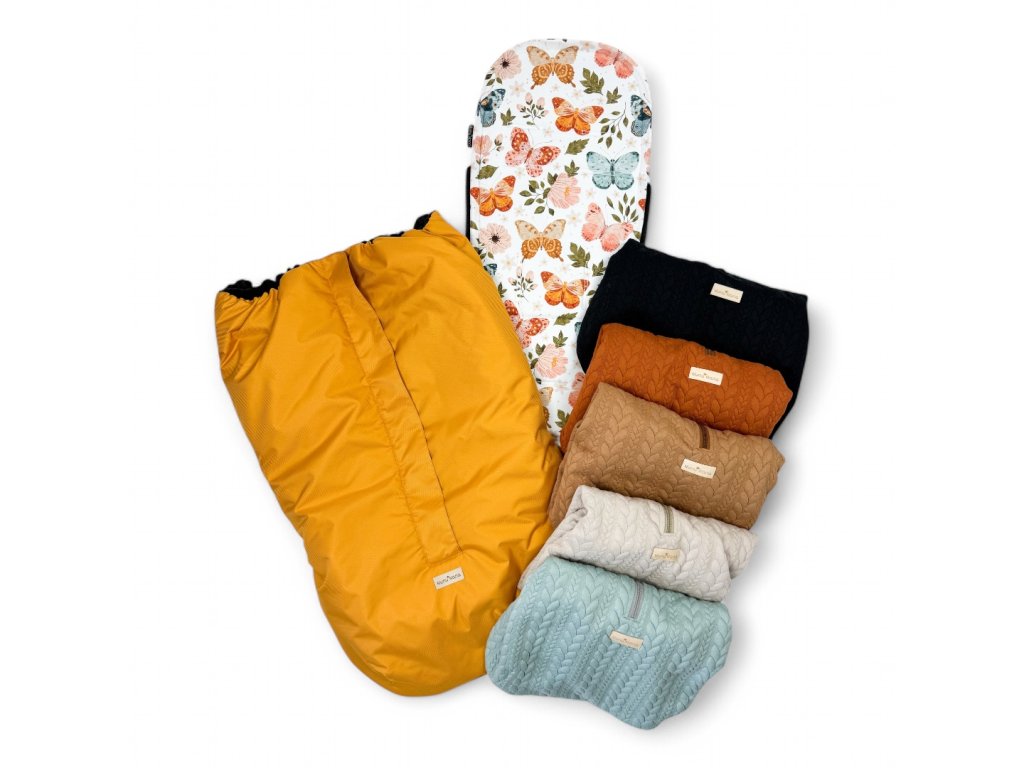 Praktická a stylová podložka do korbiček i sportovních kočárků - deky připínáte podle počasí.