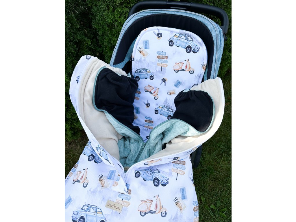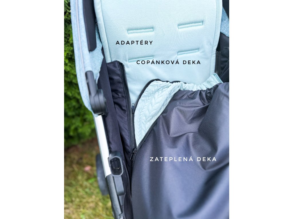 Praktická a stylová podložka do korbiček i sportovních kočárků - deky připínáte podle počasí.