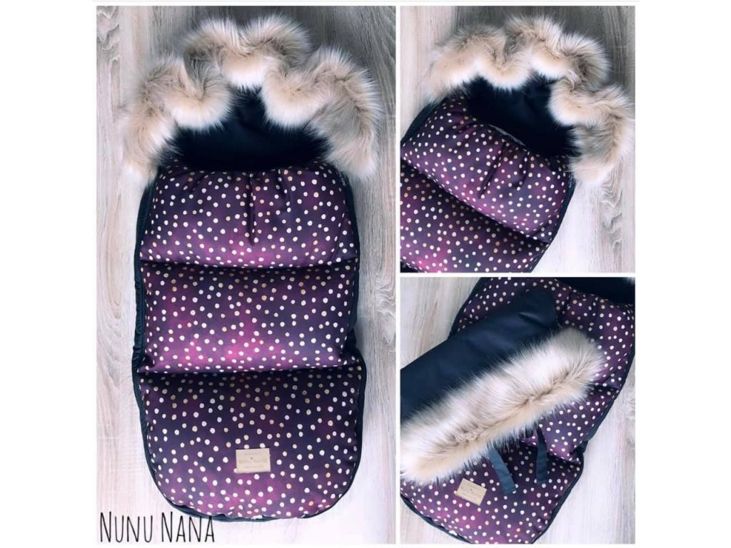 Fusak je vhodný do všech typů kočárků a korbiček, zadní díl má svislé průstřihy na pásy. Fusak lze používat i do dětských saní, zadní kapucku jen zaháknete za opěradlo a dítě Vám nesjede.